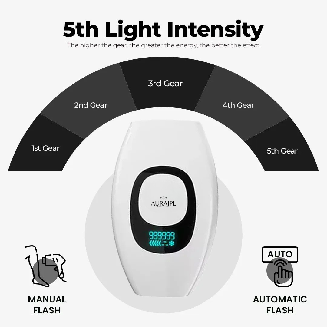 Designed for versatile use, AuraIPL is gentle yet effective for arms, legs, underarms, face, and bikini line — giving you full-body confidence.